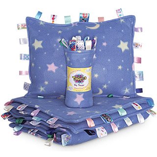TAGGIES are called an "interactive blanket" because it provides the child with both an exciting activity and at the same time it is their cuddly, soft security blanket which we as mothers all know kids need. This matching set gives baby an opportunity to grow with his or her Taggie. A wonderful gift for expectant parents, our crib set completes any new nursery. Set includes a Taggies Crib blanket, Taggies Pillow and a Big Taggie Blanket in Sunny Day Design - NOT Starrry night Read more...